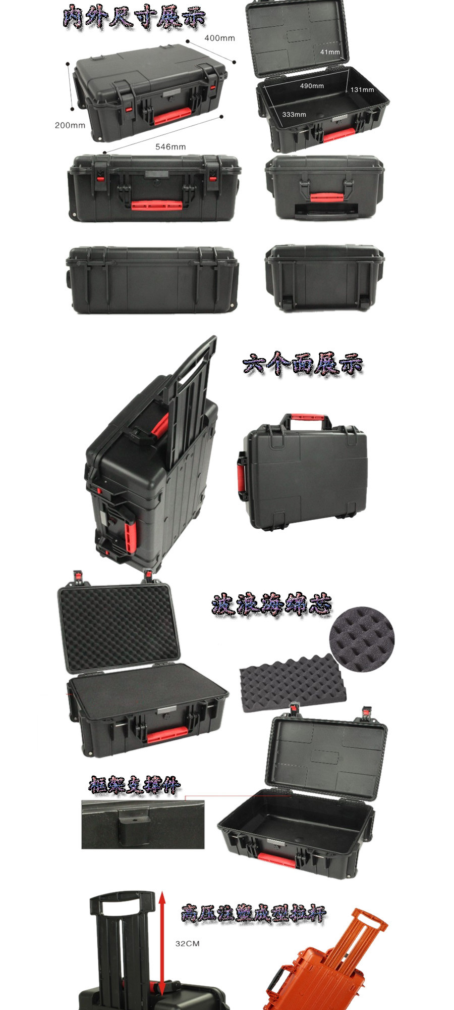 簡要說明:廣泛用于傳媒、公安、消防、軍隊、航空、戶外攝影、野外考察、科學(xué)探測等眾多領(lǐng)域的高端儀器、儀表。具有高強度、高抗壓沖擊、防潮、絕對密封、防塵、防水等特點。產(chǎn)品材質(zhì):ABS原料,箱體采用高抗沖擊的高分子聚合材料一體注塑成型,密封采用扁型彈性發(fā)泡密封橡膠條,確保防水氣密,所有較軸均采用不銹鋼材質(zhì)。