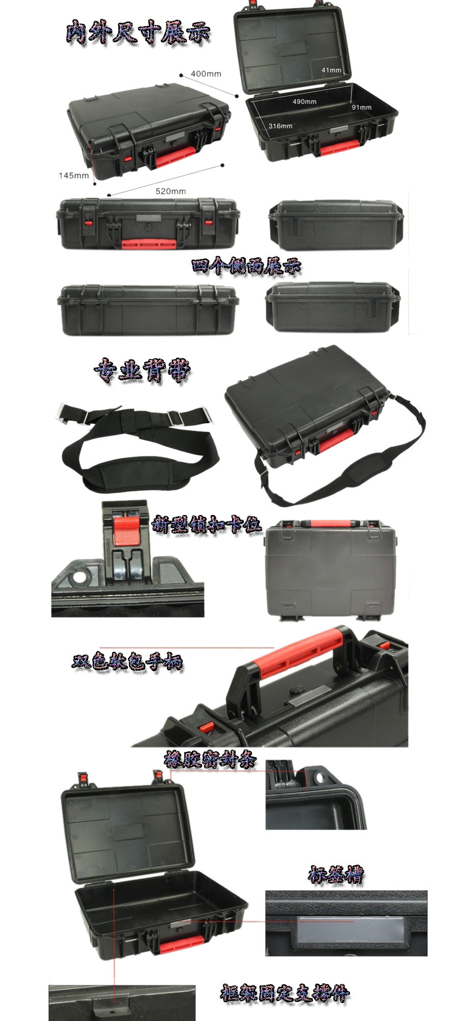 簡要說明:廣泛用于傳媒、公安、消防、軍隊、航空、戶外攝影、野外考察、科學探測等眾多領域的高端儀器、儀表。具有高強度、高抗壓沖擊、防潮、絕對密封、防塵、防水等特點。產品材質:ABS原料,箱體采用高抗沖擊的高分子聚合材料一體注塑成型,密封采用扁型彈性發(fā)泡密封橡膠條,確保防水氣密,所有較軸均采用不銹鋼材質。