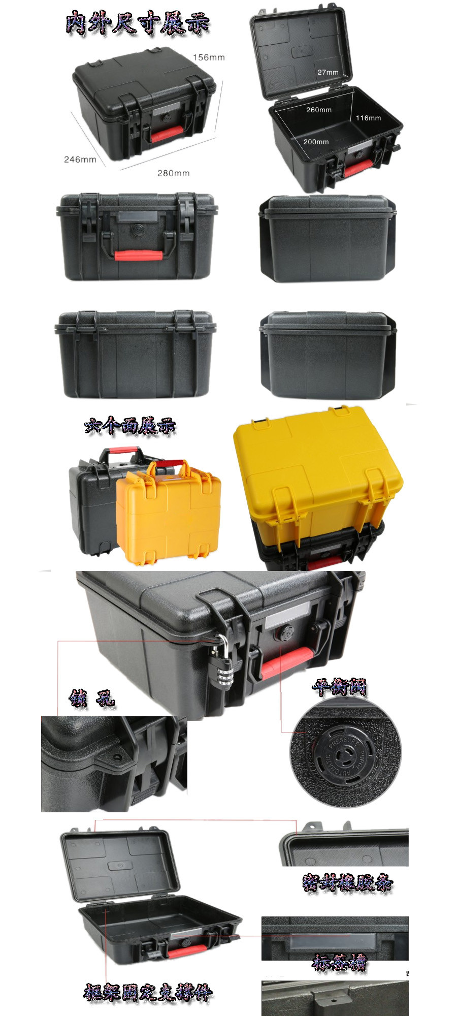 簡(jiǎn)要說明:廣泛用于傳媒、公安、消防、軍隊(duì)、航空、戶外攝影、野外考察、科學(xué)探測(cè)等眾多領(lǐng)域的高端儀器、儀表。具有高強(qiáng)度、高抗壓沖擊、防潮、絕對(duì)密封、防塵、防水等特點(diǎn)。產(chǎn)品材質(zhì):ABS原料,箱體采用高抗沖擊的高分子聚合材料一體注塑成型,密封采用扁型彈性發(fā)泡密封橡膠條,確保防水氣密,所有較軸均采用不銹鋼材質(zhì)。