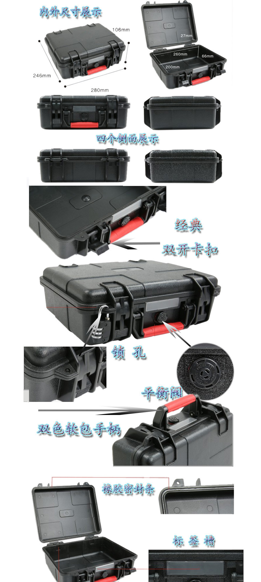 簡要說明:廣泛用于傳媒、公安、消防、軍隊、航空、戶外攝影、野外考察、科學(xué)探測等眾多領(lǐng)域的高端儀器、儀表。具有高強(qiáng)度、高抗壓沖擊、防潮、絕對密封、防塵、防水等特點(diǎn)。產(chǎn)品材質(zhì):ABS原料,箱體采用高抗沖擊的高分子聚合材料一體注塑成型,密封采用扁型彈性發(fā)泡密封橡膠條,確保防水氣密,所有較軸均采用不銹鋼材質(zhì)。