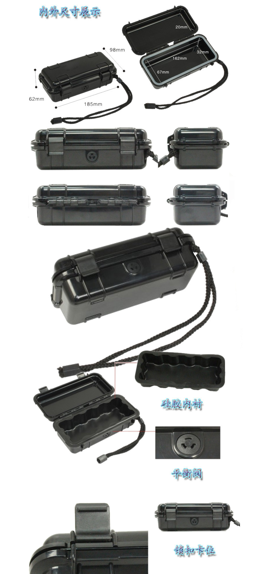 簡介:廣泛用于傳媒、公安、消防、軍隊、航空、戶外攝影、野外考察、科學探測等眾多領(lǐng)域的高端儀器、儀表。具有高強度、高抗壓沖擊、防潮、絕對密封、防塵、防水等特點。