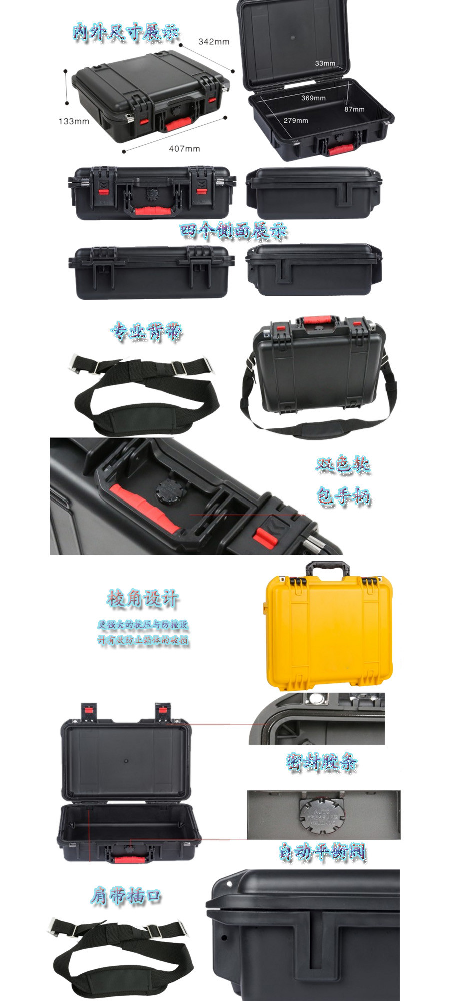 簡要說明:廣泛用于傳媒、公安、消防、軍隊、航空、戶外攝影、野外考察、科學(xué)探測等眾多領(lǐng)域的高端儀器、儀表。具有高強(qiáng)度、高抗壓沖擊、防潮、絕對密封、防塵、防水等特點(diǎn)。產(chǎn)品材質(zhì):ABS原料,箱體采用高抗沖擊的高分子聚合材料一體注塑成型,密封采用扁型彈性發(fā)泡密封橡膠條,確保防水氣密,所有較軸均采用不銹鋼材質(zhì)。