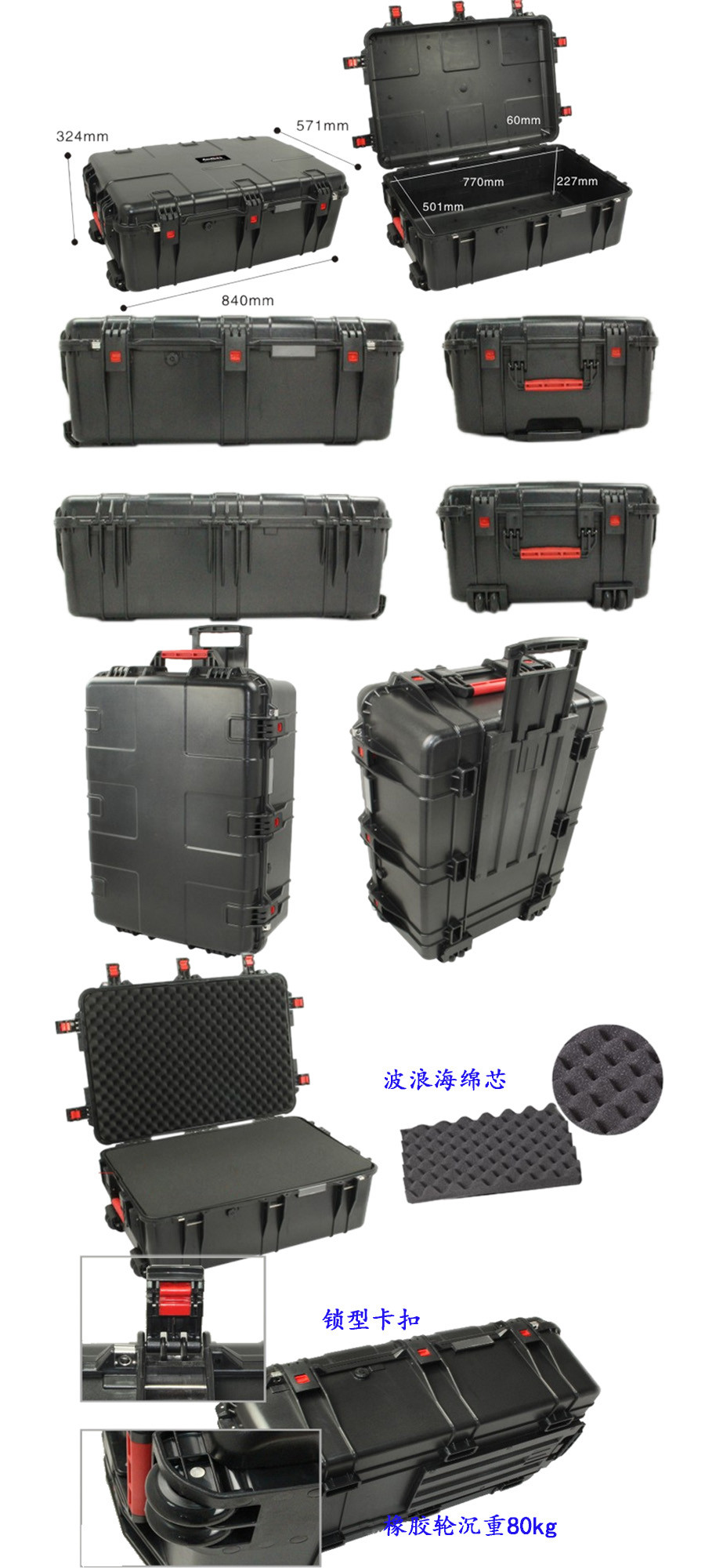簡(jiǎn)要說(shuō)明:廣泛用于傳媒、公安、消防、軍隊(duì)、航空、戶外攝影、野外考察、科學(xué)探測(cè)等眾多領(lǐng)域的高端儀器、儀表。具有高強(qiáng)度、高抗壓沖擊、防潮、絕對(duì)密封、防塵、防水等特點(diǎn)。產(chǎn)品材質(zhì):ABS原料、PP原料,箱體采用高抗沖擊的高分子聚合材料一體注塑成型,密封采用扁型彈性發(fā)泡密封橡膠條,確保防水氣密,所有較軸均采用不銹鋼材質(zhì)。
